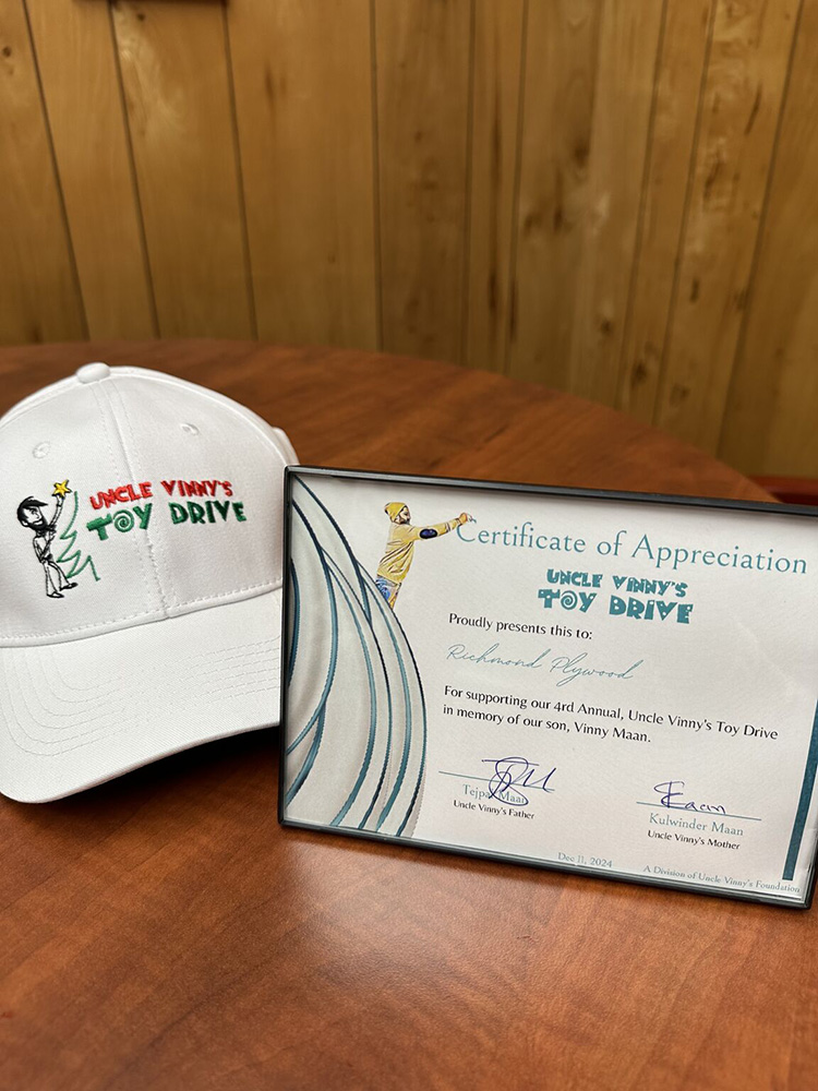 Richmond Plywood Corporation Limited is proud to support the 4th annual “Uncle Vinny’s Toy Drive” which works with Boundless Vancouver through the Salvation Army.